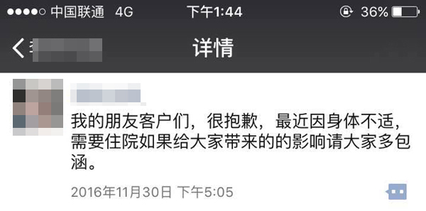 李琳生前发的最后一条朋友圈。